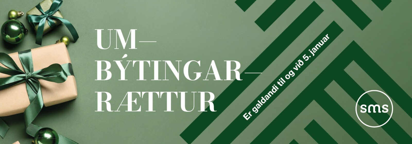 Henda tænasta er galdandi í øllum handlum í SMS frá 28. oktobur til og við 5. januar 2026. Í hesum tíðarskeiði verður eitt serligt jólamerki klistrað á príslepan. Hetta merkið gevur kundanum rætt til at býta vøruna um ella fáa ein áognarseðil fyri vøruna. Treytin er sjálvandi, at vøran er í lagi. Hesin rættur er galdandi til og við mánadagin 5. januar 2026.